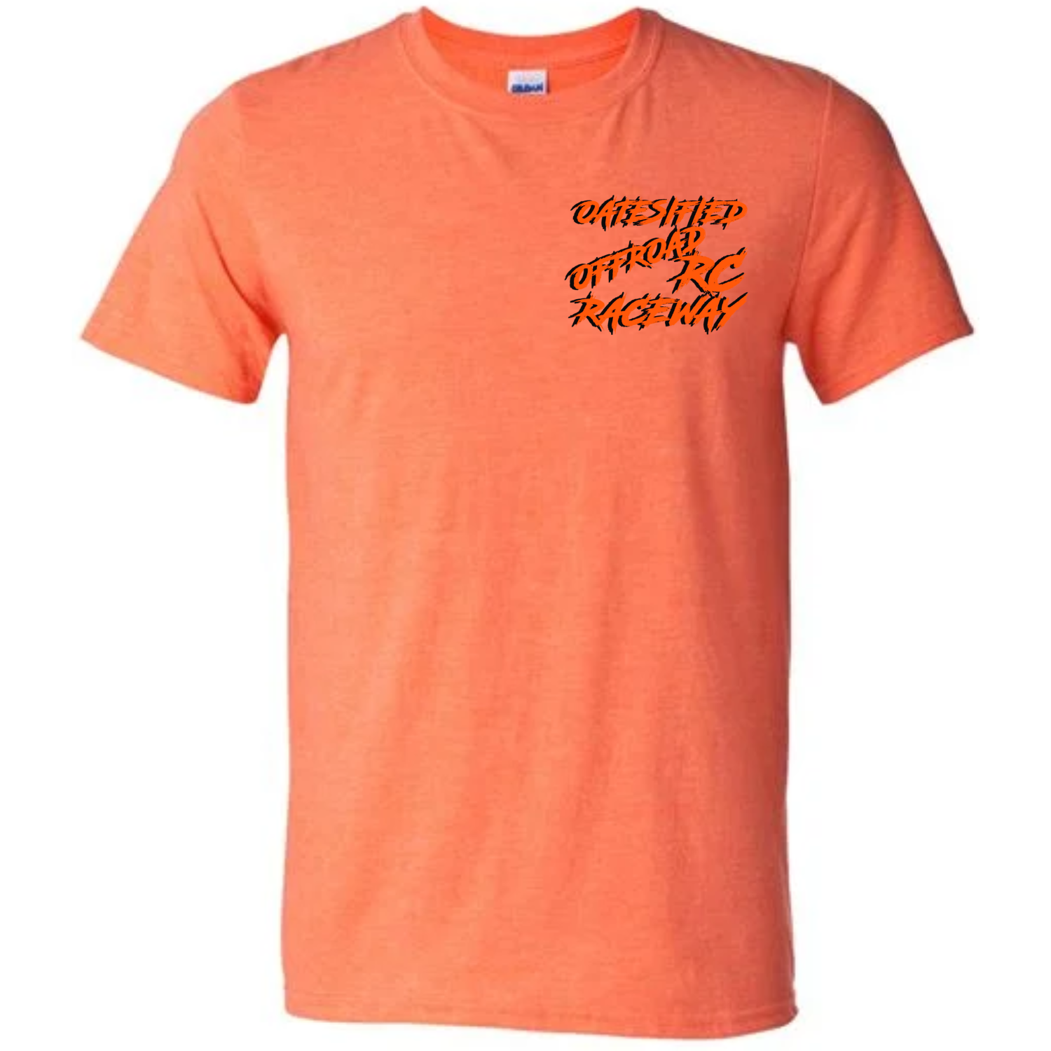 Short Sleeve Heather Orange T-Shirt with the Oatesified Logo on the front and the Inaugural 2025 Halloween Hoedown design on the back.