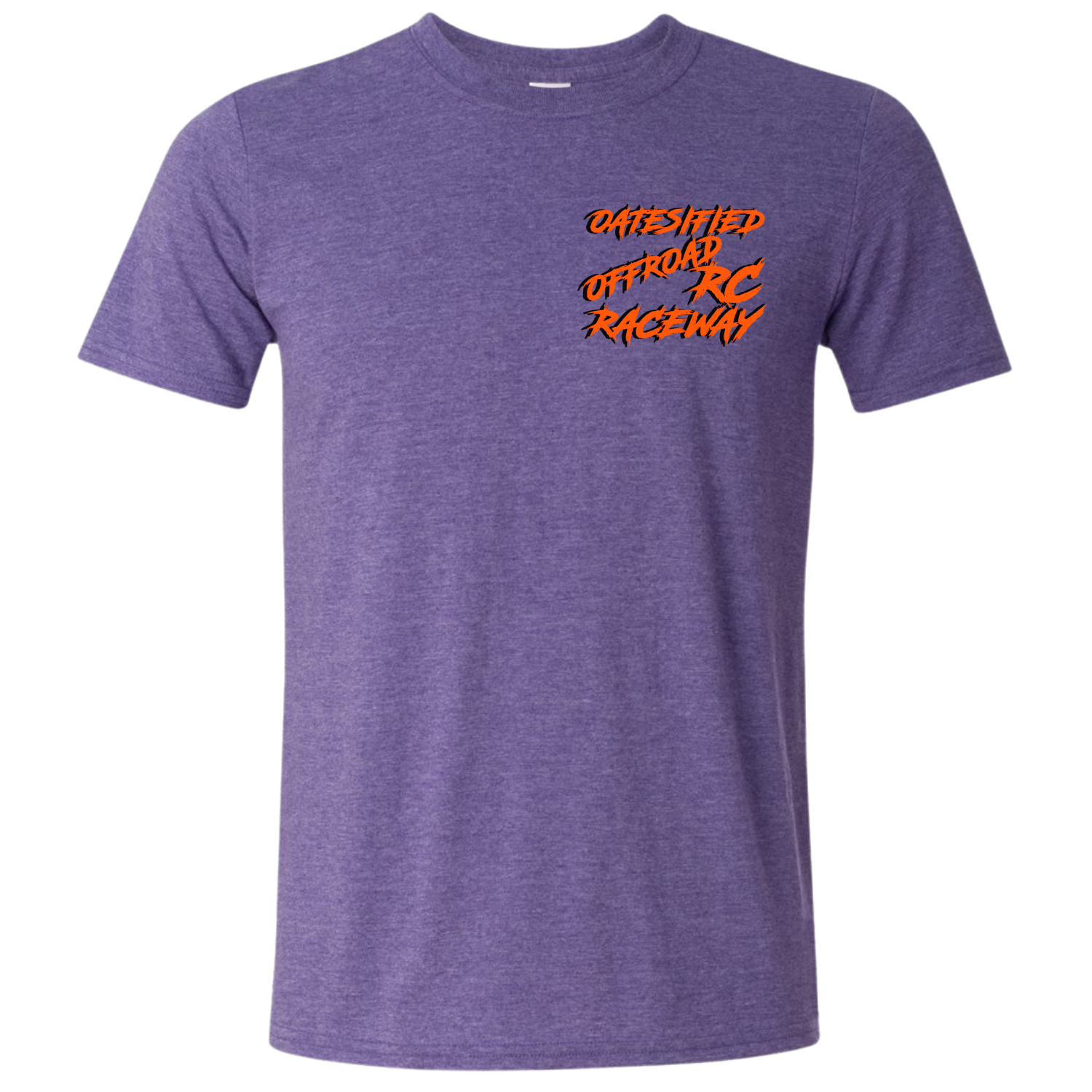Short Sleeve Heather Purple T-Shirt with the Oatesified Logo on the front and the Inaugural 2025 Halloween Hoedown design on the back.