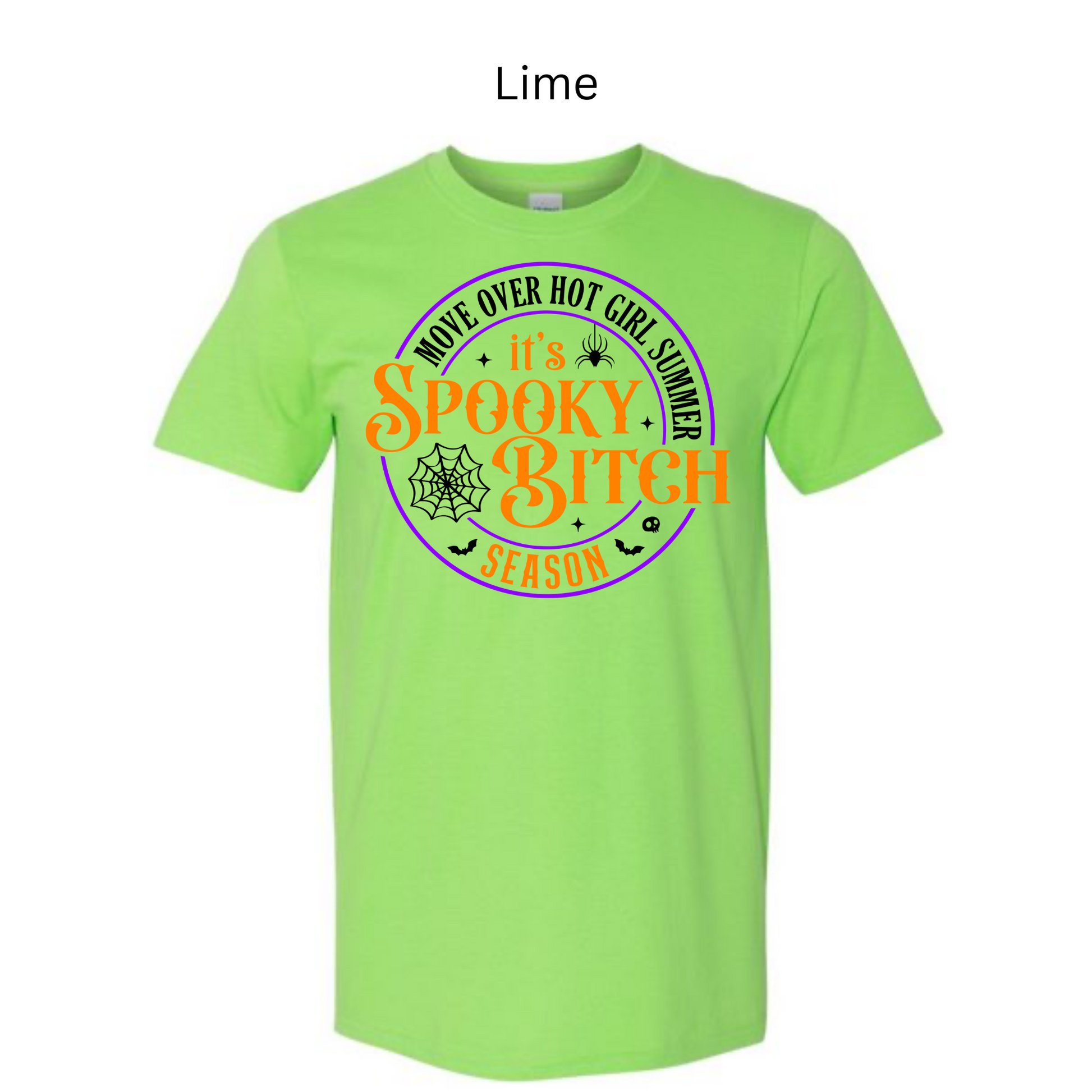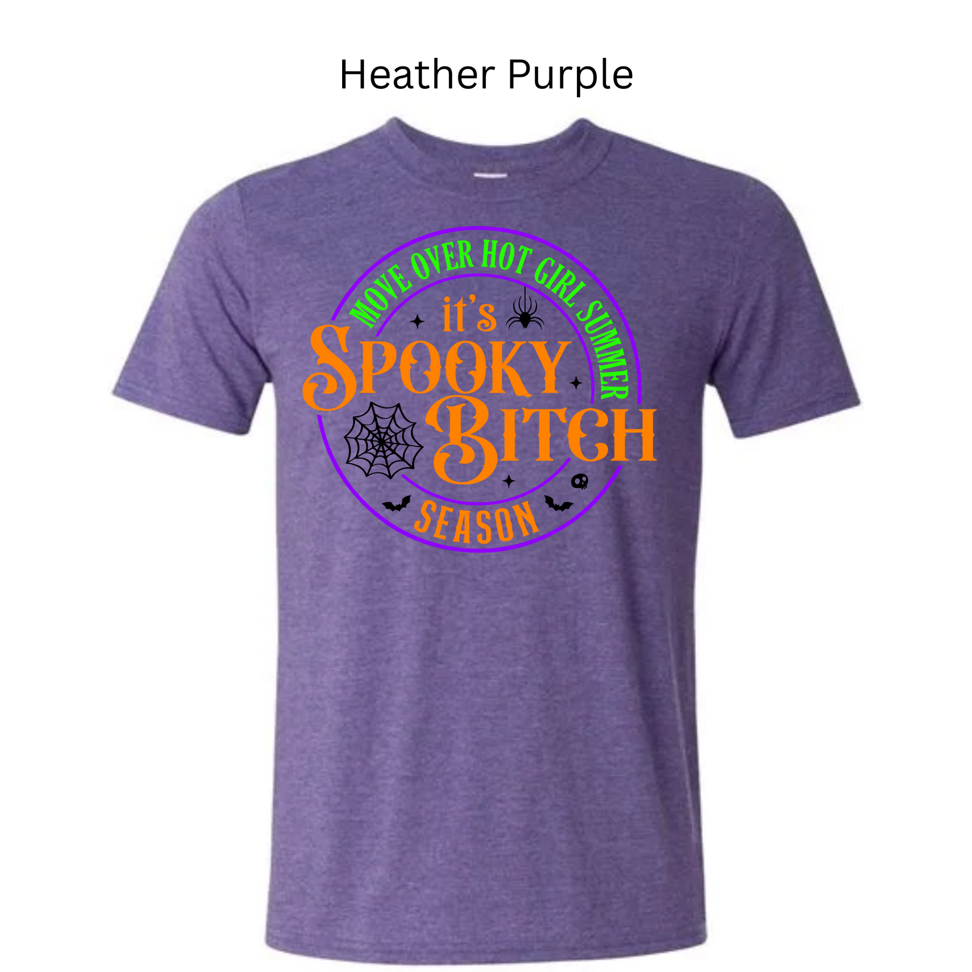 Get ready to turn up the spook factor with Spooky Bitch Season! Leave hot girl summer behind and embrace the creepy and kooky vibes of this season. Perfect for any Halloween lover or anyone looking to add some eerie fun to their wardrobe. Don't miss out on this spooky trend!